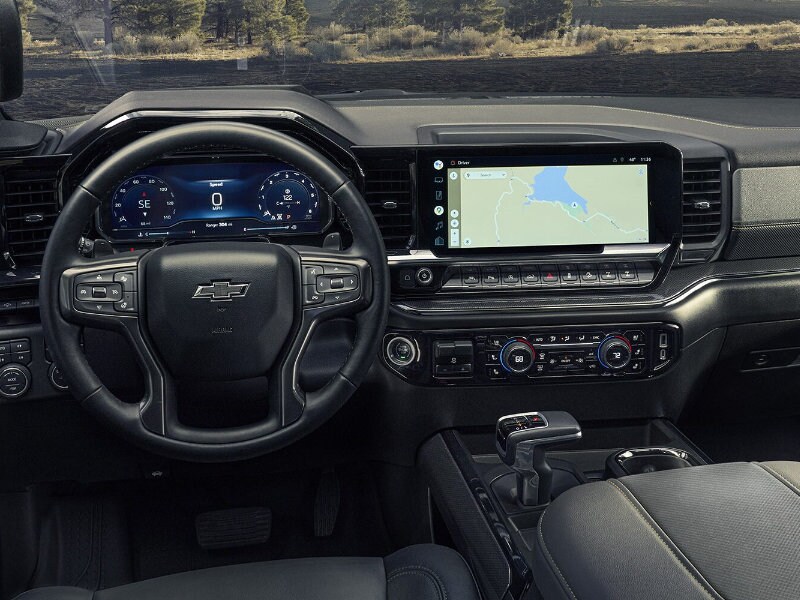 Silverado has always been a comfortable ride, but with a design refresh is even more so. The dash has been retooled and features a massive digital driver instrument panel. With a slick interface that features customized options, you can view all the crucial data about Silverado from behind the wheel. The modern digital displays don't end with the instrument panel, as there is an oversized 13.4-inch media touchscreen for staying connected. Pair your smartphone using wireless Apple CarPlay or Android Auto and gain access to turn-by-turn navigation, streaming entertainment, and much more. You can add enhancements to the interior, like premium wood-grain accents, for a luxurious experience. You'll also find several convenient storage compartments throughout the cabin for easy stowing.