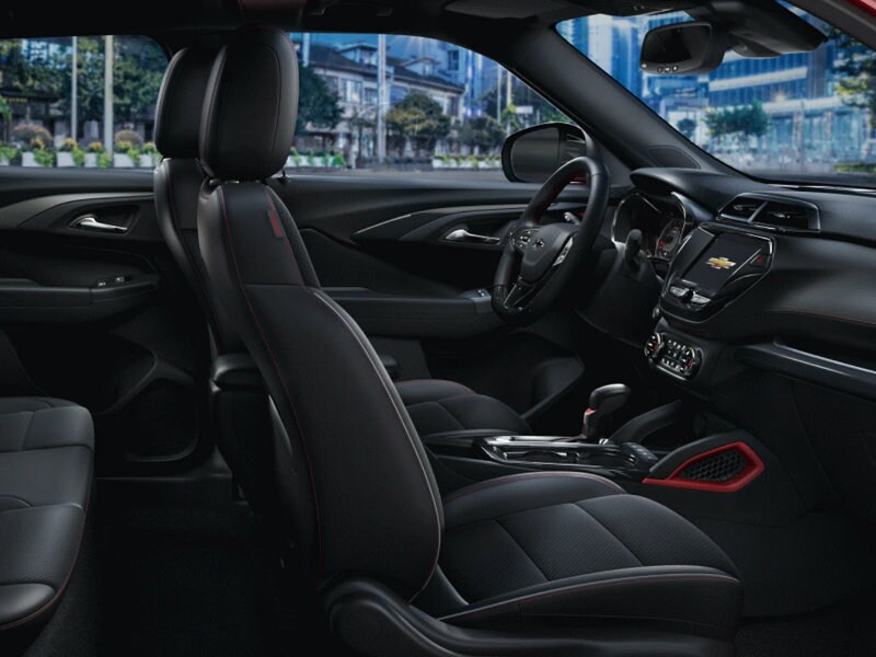 The interior of the Chevrolet Trailblazer is designed with the driver in mind. It has ergonomic seating for maximum comfort and plenty of storage space for your luggage. The standard version interior is jet black with Arizona accents and leatherette trim. The interior has many packages to choose from that will suit any of your needs. From the convenience package that comes with an 8" touch screen with climate control, the summer/winter floor package that replaces the standard mats with premium floor mats and all-weather liners, the technology package that comes with the latest technology available in the market like wireless charging, HD rear vision camera to aid in reversing, HD radio, LED headlamps, SD card reader, Bose® premium audio and of course the 8" HD color touchscreen display.