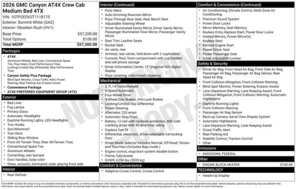 A great vehicle and a great value! Turbocharger technology provides forced air induction, enhancing performance while preserving fuel economy. Top features include power front seats, a trailer hitch, a bedliner, and the power moon roof opens up the cabin to the natural environment. Smooth gearshifts are achieved thanks to the efficient 4 cylinder engine, and for added security, dynamic Stability Control supplements the drivetrain. Four wheel drive allows you to go places you've only imagined.