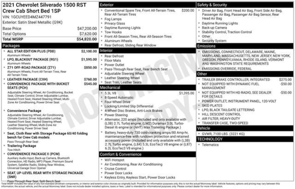 - Z71 hard badge (Work Truck, LT, RST and LTZ models)