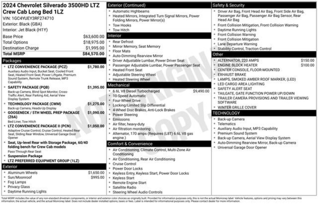 Boasting a robust Duramax 6.6L V8 Turbodiesel engine, the Silverado 3500HD LTZ delivers an impressive 470 horsepower and an astounding 975 lb-ft of torque, ensuring you have the muscle to conquer any task. Paired with a smooth-shifting 10-speed automatic transmission and capable 4-wheel drive, this truck is ready to take on any terrain or towing challenge.