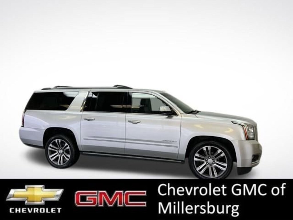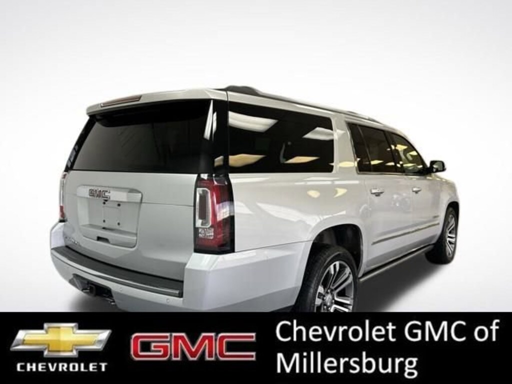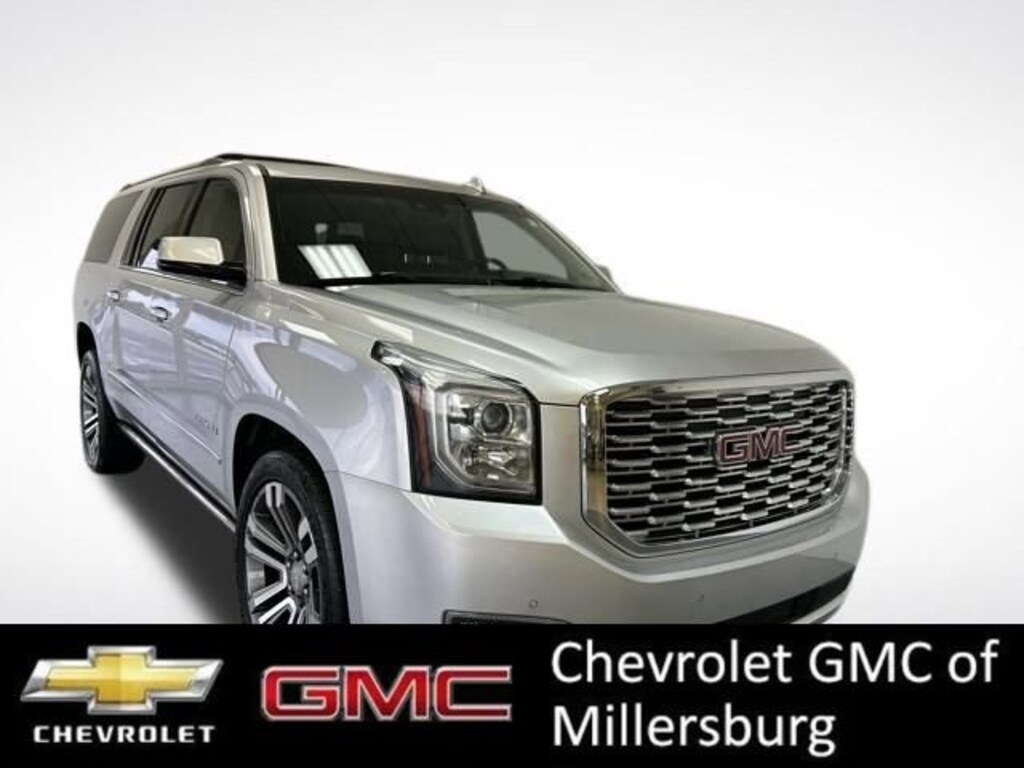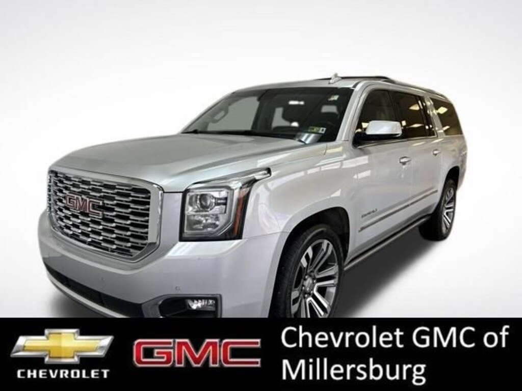 2019 GMC Yukon XL Denali 4WD comes finished in Quicksilver Metallic with a Jet Black leather interior and is powered by the EcoTec3 6.2L V8 engine paired with a 10-speed automatic transmission. It includes the Denali Ultimate Package, Enhanced Driver Alert Package, Magnetic Ride Control Suspension, and Preferred Equipment Group 5SA. The cabin features heated and ventilated front seats, heated rear seats, power front seats with memory, perforated leather-appointed seating, power-adjustable pedals, heads-up display, tri-zone automatic climate control, rear air conditioning, and a heated leather-wrapped steering wheel. Technology highlights include navigation, Bose Centerpoint Surround Sound with 10 speakers, Apple CarPlay/Android Auto, IntelliLink premium audio with SiriusXM, wireless charging, Universal Home Remote, lane keep assist, forward collision alert, rear cross-traffic alert, lane change alert with blind zone warning, and adaptive suspension for a smooth and responsive ride. Exterior features include body-color bumpers, auto-dimming heated power mirrors, roof rails, spoiler, IntelliBeam automatic high-beam headlights, front fog lights, power liftgate, hands-free programmable rear liftgate, rain-sensing wipers, and 22-inch bright aluminum wheels. Rear passengers can enjoy a Blu-Ray/DVD entertainment system with a third-row screen. Additional equipment includes a power tilt/sliding sunroof, integrated trailer brake controller, and 3.23 rear axle ratio. This Yukon Denali also comes with enhanced security, adaptive cruise control, and OnStar with GMC Connected Services capability, ensuring a premium, secure, and connected driving experience.