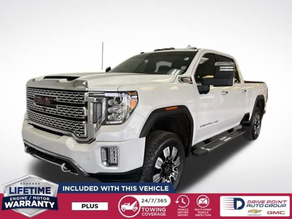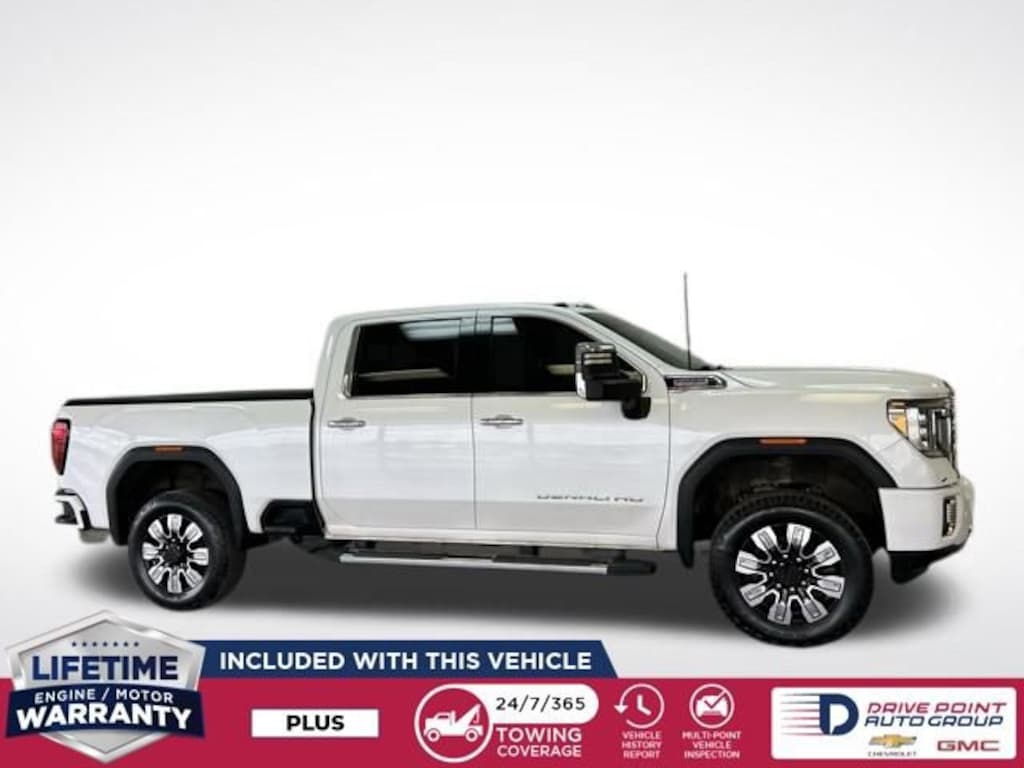 Recent Arrival in Millersburg!! 4x4. Turbo Diesel 6.6L. Sun/Moonroof. White Frost Tricoat. Tow Hitch. Blind Spot Monitor. Cross Traffic Alert. Rear Parking Aid. Running Boards. Fog Lamps. Front Collision Warning. The 2022 GMC Sierra 2500HD Denali with the 6.6L Duramax Turbo-Diesel engine is a luxurious heavy-duty truck featuring a powerful diesel engine paired with a 10-speed Allison transmission, premium interior amenities like forge-perforated leather seats and genuine wood trim, advanced technology including a 15-inch Head-Up Display and HD Surround Vision, and a bold, rugged exterior with Denali-exclusive styling cues and chrome accents. It offers strong towing and payload capabilities, a comfortable and high-tech cabin, and a suite of safety features for a confident and premium driving experience.