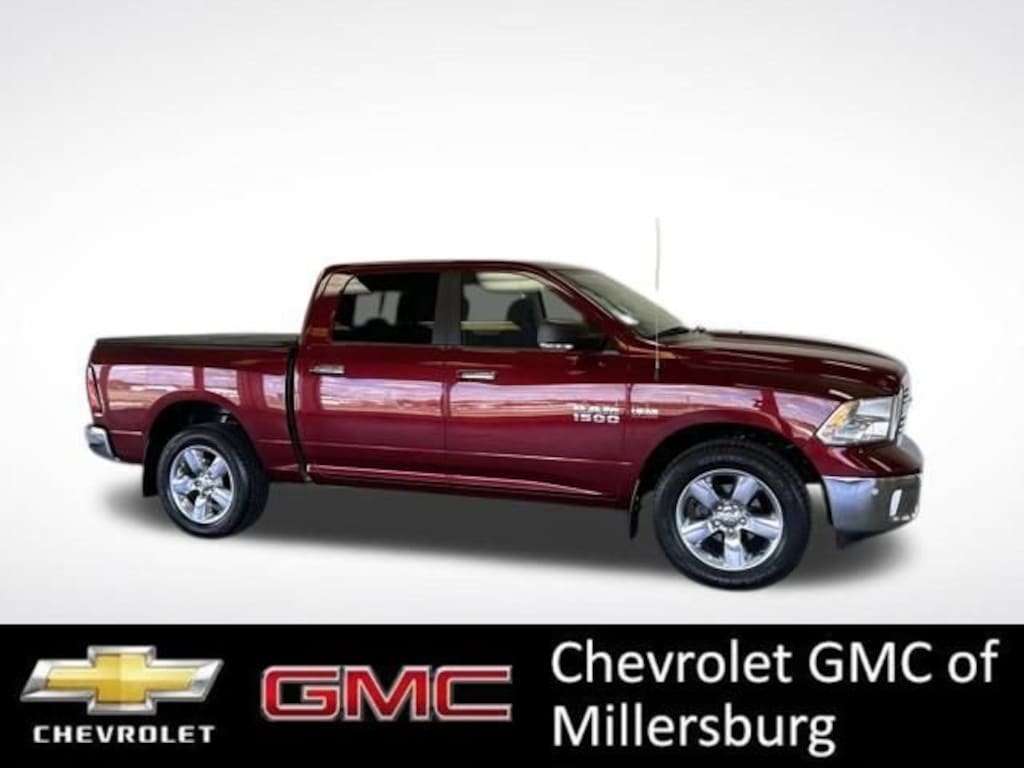 The 2016 Ram 1500 Big Horn 4WD Crew Cab is finished in Delmonico Red Pearlcoat with a Diesel Gray/Black cloth interior and powered by a 5.7L HEMI V8 engine paired to an 8-speed automatic transmission. It comes equipped with the Big Horn Regional Package, Heated Seats & Wheel Group, and Quick Order Package 26S Big Horn. Inside, youâll find premium cloth 40/20/40 bench seats with heated front seats, heated leather-wrapped steering wheel, dual-zone automatic climate control, power 10-way driver seat with lumbar adjust, Uconnect 8.4-inch touchscreen display, Bluetooth with integrated voice command, SiriusXM satellite radio, media hub with USB and AUX inputs, electroluminescent instrument cluster, and universal garage door opener. Safety and convenience features include ParkView rear backup camera, ParkSense front and rear park assist, electronic stability control, traction control, ABS brakes, dual front and side-impact airbags, and a security alarm. Exterior highlights include chrome bumpers and grille, power heated fold-away mirrors, LED bed lighting, active grille shutters, dual rear exhaust with bright tips, underhood lamp, 20-inch aluminum chrome-clad wheels, and a 3.21 rear axle ratio. Additional equipment includes a Class IV receiver hitch, electric shift-on-demand transfer case, remote start system, and 26-gallon fuel tank, delivering a blend of power, capability, and comfort ideal for work or play.