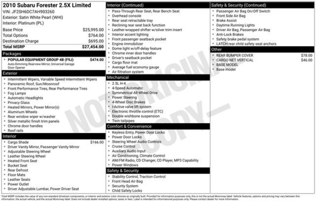 Burns through oil like it's water. Very disappointed that a large manufacturer like Subaru that sells itself on value for money and reliability would 1. Put out a bad engine, 2. Discover that it was defective 3. Change the engine mid year and cheat consumers who purchased earlier in 2011 by not issuing a recall on these oil guzzlers. . Subaru- Where is your integrity?… - 5.0